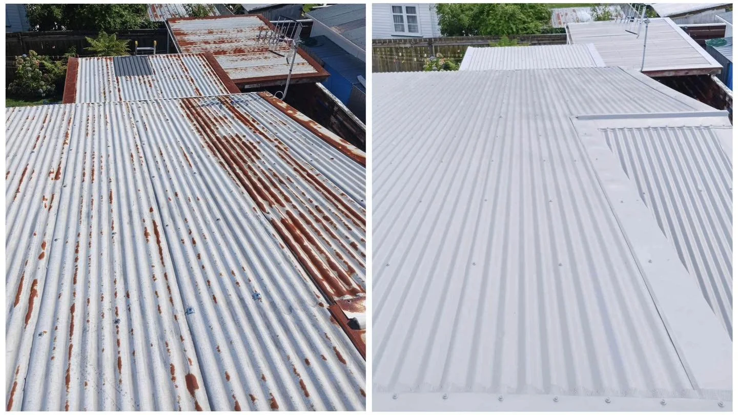 Over time, even the strongest roofs begin to show signs of wear. Wellington’s high winds, salt air, heavy rain, and harsh UV exposure can cause paint breakdown, surface rust, fading, and deterioration. Left untreated, these issues can lead to leaks, corrosion, and costly structural damage.